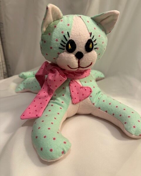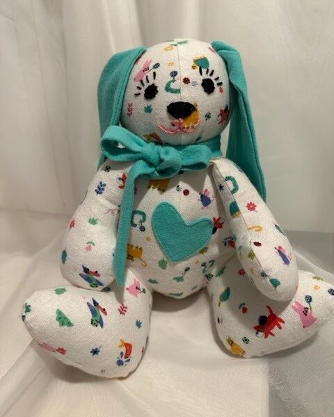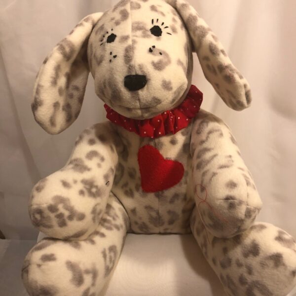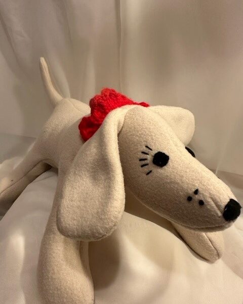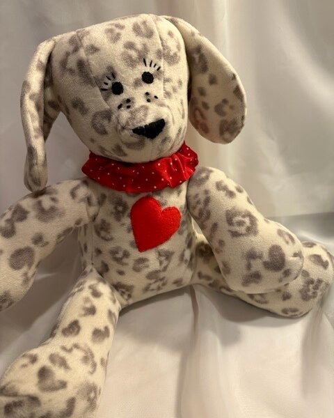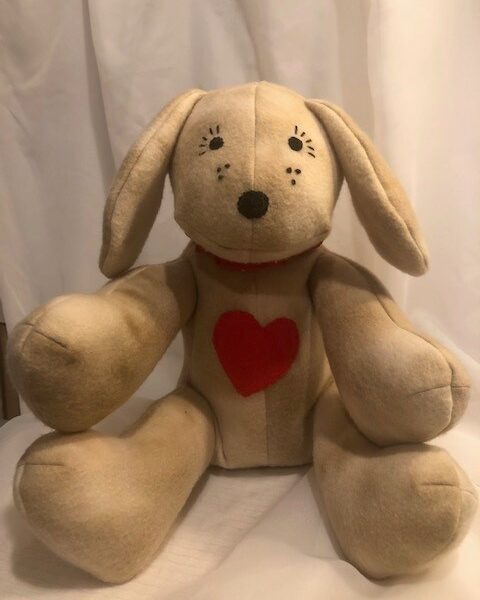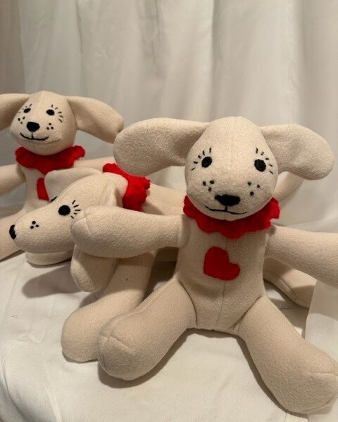 Some are made from soft cotton flannel and others from polyester fleece. I’ve even made custom puppies to resemble Frenchies, Bulldogs, Terriers, and Dachshunds. I’ve also created memory bears and heart pillows from pajamas or shirts worn by a loved one who has passed.