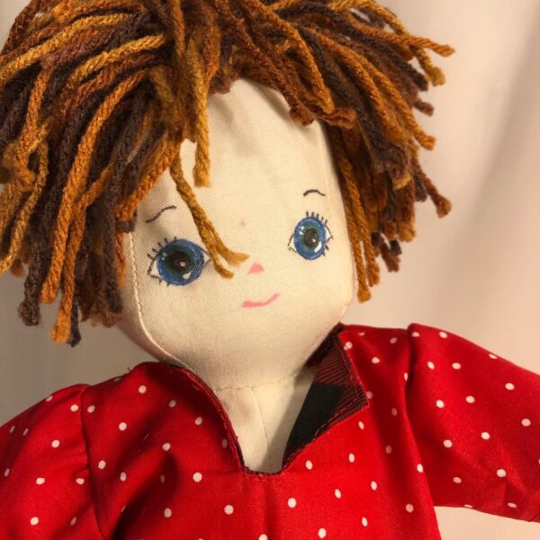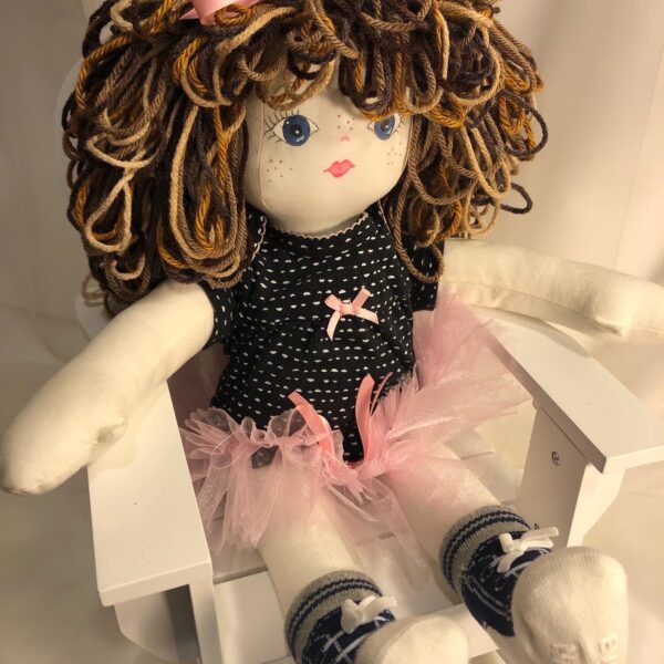 – the 18” raggedy doll with floppy legs and custom clothing