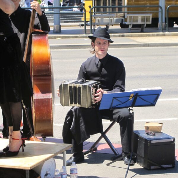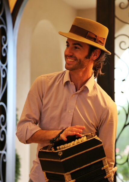 In the application, when asked what made him start doing his act, and what drives him to keep pursuing it, his answer was, “I love music, love the bandoneon, and from a very early age—probably five years old, have enjoyed entertaining. The music, the instrument, the use of my voice—all feel very healing to me. Last fall, and again this winter, I toured many of the retirement villages up and down California. The enthusiastic response I receive from these seniors who grew up with this music is beyond words. I’ve watched people come to life and replay memories that made them laugh and sing and dance when they could—even if it was in their wheelchairs. The joyful response from the audience brings me great joy in return. I’ve performed for weddings, birthdays, anniversaries, fund raising events, and always the gift I give comes back to me multiplied.