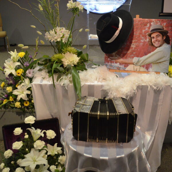 We laughed, and we cried. We prayed, and we listened, and we held each other. I was surrounded by so much love and tender caring. Sitting between my two sons, Troy and John, breathing in the beauty of the flowers and photos, and seeing Michael’s beloved bandoneon on the altar, hearing his singing in the background, I accessed a strength within myself that came from knowing that the bonds of love can never be broken. Sadness and joy, pain and peace, hugging and being hugged—I let it all in.